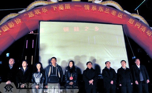 1月4日晚,“送欢乐、下基层――情系东兰老区”慰问活动在广西东兰县城文化广场拉开帷幕。图为中国影协、广西文联等领导及中国影协演职人员与观众见面。广西新闻网记者 蒙卫芝 摄
