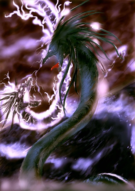 火龙:火龙是在开天辟地时出现的,全身被红色的火焰包围。记载中的火龙给混沌初开的世界带来了光明和可供人类生存的火焰。