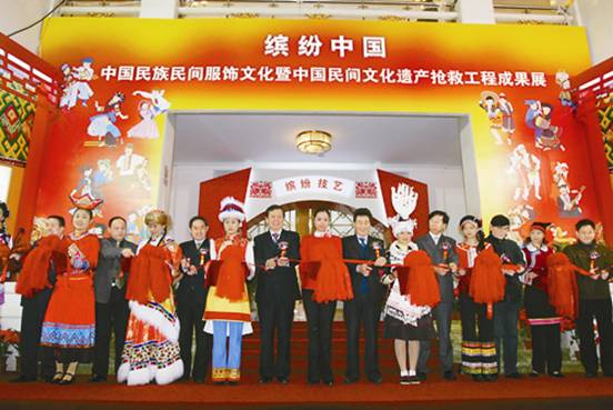 2009年11月12日,由中国文联、中国民协主办的“缤纷中国——中国民族民间服饰文化暨中国民间文化遗产抢救工程成果展”在北京民族文化宫展览馆开幕。