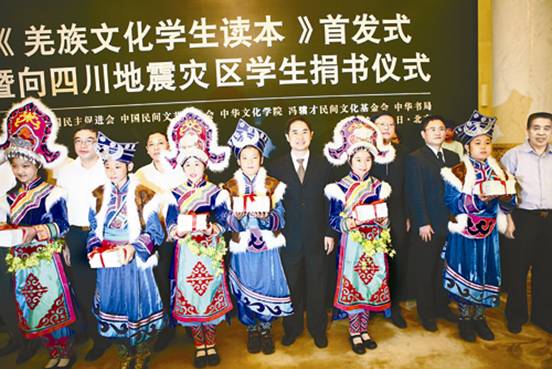 2008年9月7日,由民进中央、中国民协、中华文化学院、冯骥才民间文化基金会、中华书局联合主办的《羌族文化学生读本》首发式暨向地震灾区学生捐书仪式在北京人民大会堂举行。