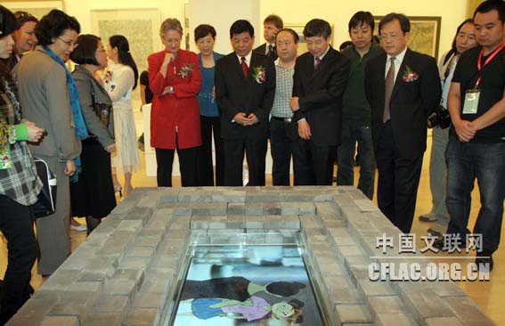 9月20日,由中国文联、北京市人民政府和中国美协联合主办的以“生态与家园”为主题的第四届北京国际美术双年展在中国美术馆开幕。图为与会领导参观中国作品。中国文联网 余宁 摄