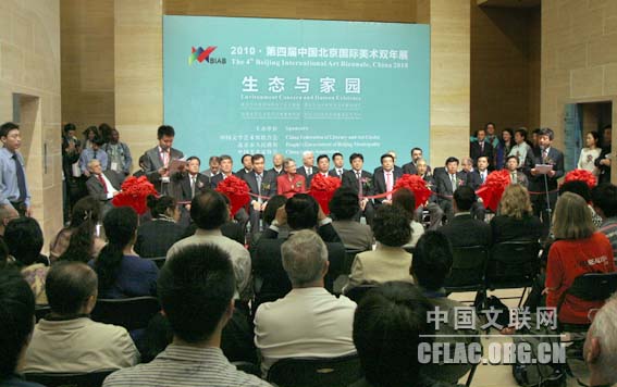 9月20日,由中国文联、北京市人民政府和中国美协联合主办的以“生态与家园”为主题的第四届北京国际美术双年展在中国美术馆开幕。图为开幕式现场。中国文联网 余宁 摄