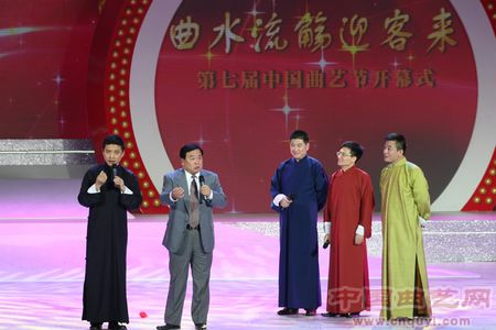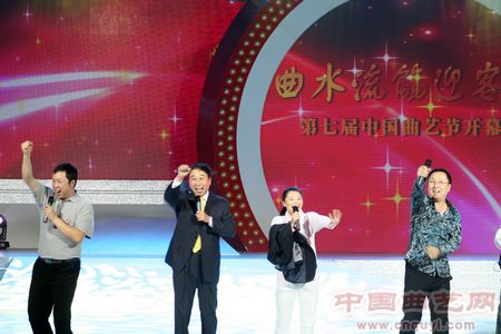 中国曲协分党组书记、驻会副主席董耀鹏在开幕式上致辞,中国文联党组成员、副主席冯远代表中国文联向第七届中国曲艺节的召开表示祝贺。