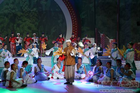 “谷子好,谷子好……”来自山西省的高平鼓书《谷子好》,演员充满激情的演唱让人觉得黄土高原的古风扑面而来。晚会上,充满地域或民族风情的曲艺表演,新奇精彩纷呈,成为一个个光彩夺目的亮点。来自新疆维吾尔族的“十二木卡姆”、朝鲜族的《盘索哩》、藏族的囊玛等少数民族曲艺集锦,让现场观众领略了各族曲艺艺术的特色,获得了美妙的艺术享受。