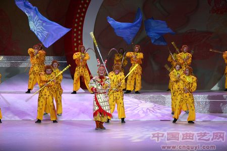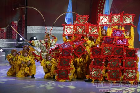 将近两个小时的演出,在一片欢歌笑语中,全部转化成了快乐。晚上10时左右,在群猴送福的喜庆中,当晚的开幕式晚会也划上了圆满的句号。