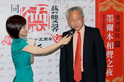 10月13日中午,施伟强总领事和黄凤文副总领事在总领馆会见了郭德纲一行,并为他们举行了接风午宴。当日下午3:30,澳洲星文化传播公司在墨尔本为郭德刚相声演出团的到访举办了新闻发布会,施伟强总领事和黄凤文副总领事出席了新闻发布会。施总领事在讲话中说,今年在澳洲举办“中国文化年”,郭德纲相声表演团的演出已列入“中国文化年”项目。相声演出不仅丰富了“中国文化年”的活动,也为更多澳洲朋友提供了学习和了解中国传统文化的机会。郭德纲表示,中国相声150年以来的出国演出都是慰问义演,这次是首次出国商演,可谓破冰之旅。澳洲主流媒体对郭德刚相声演出团的澳洲之行商演活动进行了报道。