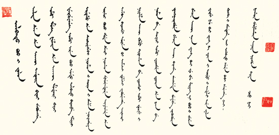 中国历史上曾经有过多民族文字书法并美的时代,它们共同谱写出中国书法史上的华彩乐章。从现有的文物资料中可以看出,每个少数民族文字都有自己独特的书法形态。而且多民族文化的相互影响、相互交融的特点非常明显,从许多少数民族文字的书法作品中可以看出,少数民族文字书法在发展过程中,其通篇结构、章法布局、引领管带、首尾呼应、气运流动、起伏随势、笔毫捻转、寓情寄意等技法,都与汉字书法传统有着千丝万缕的联系,在书写工具、纸张运用、落款用印、美学理念等方面与汉字书法的共同之处也有很多。而且,清代满文、蒙古文的毛笔抄稿,历来都被视为历史价值极高的书法作品;满文、蒙古文字对于汉族书法家或使用汉字创作的书法家也带来很多启发。其中,作为元朝官方文字的八思巴文就被很多汉族篆刻家在创作时借鉴。可以说,包括满文书法在内的少数民族文字书法是扩大和丰富中国书法艺术表现力和文化视野的宝贵元素。可惜的是,在中国书法和篆刻成为世界非物质文化遗产的今天,书法艺术的长河中却难以看到少数民族书法的身影,这不能不说是一种遗憾。