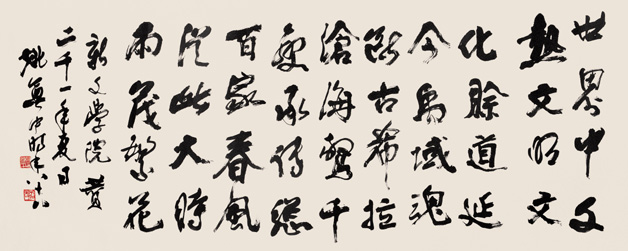 姚奠中先生诗、书、画、印等作品先后被人民大会堂、全国政协、中国美术馆等收藏。在此次表彰大会上,山西省委宣传部还向姚奠中先生颁发了刻有“德艺弘通”四个大字的金字牌匾,以表彰他对中国文化传统文化事业的贡献。