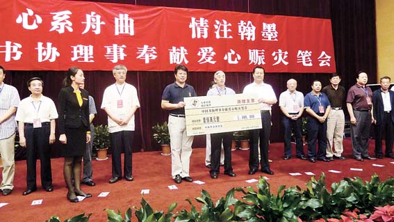 2010年8月15日,中国书协举行中国书协理事奉献爱心赈灾笔会,向甘肃舟曲灾区捐款一百万元