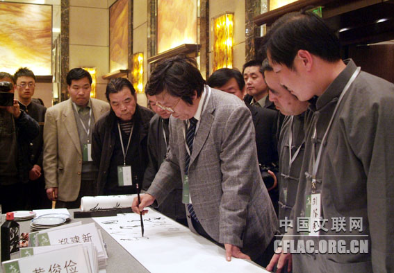 邓铜山向中国书协颁发了捐赠证书,并向中国书协和书法家们表示崇高的敬意和衷心的感谢。在捐赠仪式上,中国书协呼吁书法家继续以各种方式关注灾区,支援灾区,献上爱心。