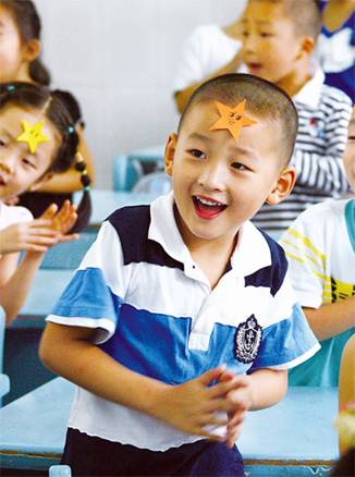2010年9月1日,恢复健康后的郎铮在小学的课堂上拍手欢唱着。杨卫华/摄