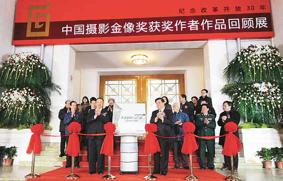 12月16日,由中国文联、中国摄协主办的纪念改革开放30年中国摄影金像奖获奖作者作品回顾展在北京民族文化宫开幕。全国政协副主席白立忱,中国文联党组书记、副主席胡振民,党组副书记、副主席覃志刚,党组成员、书记处书记廖奔,中宣部文艺局局长杨新贵,中国文联国内联络部主任夏潮,中国摄协部分在京主席团成员、顾问以及分党组领导,中国摄影金像奖历届组委、评委,部分参展作者等出席了展览开幕式。开幕式由中国摄协分党组书记、副主席李前光主持。