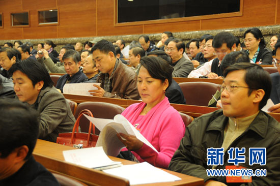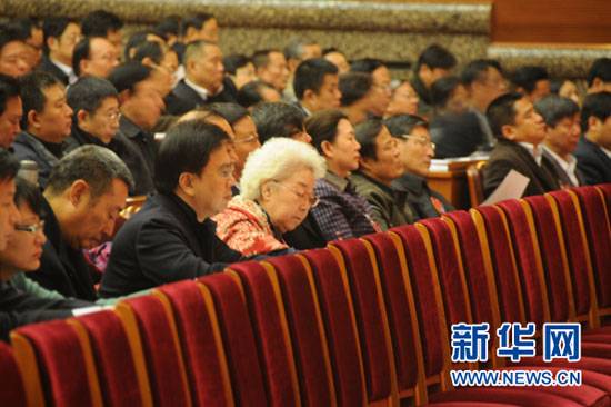 11月21日,中国文联第九次全国代表大会预备会议在京举行,会议通过了第九次文代会领导机构和大会议程。这是代表们在认真听会。新华网 张晋龙 摄