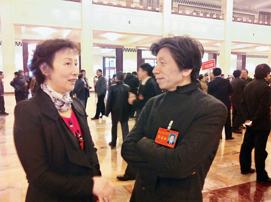 范碧云与范迪安难得一见,会议间歇抓紧交谈 本报记者 冉茂金 摄