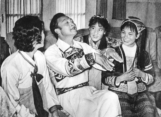 著名舞蹈家贾作光向少数民族舞蹈演员传授舞艺