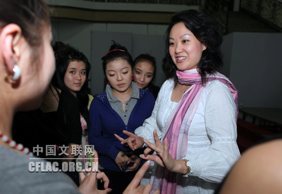 王艳辅导青海戏剧艺术剧院的小学员们。高扬 摄