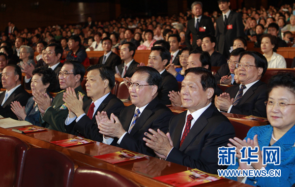 9月30日,庆祝中华人民共和国成立62周年音乐会“祖国颂”在北京人民大会堂举行。中共中央政治局常委李长春等领导同志与首都各界群众欢聚一堂,共同欣赏这台音乐会。新华社记者鞠鹏摄