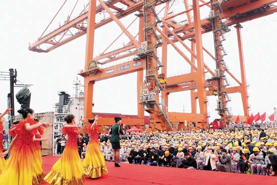 文艺家下基层,集装箱码头上的深情演唱受到工人兄弟们的热烈欢迎。