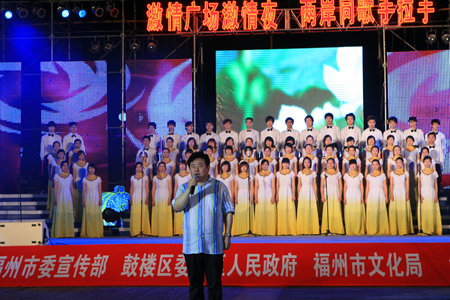 19日晚 ,温泉公园激情广场热力四射、歌声飞扬。由市委宣传部,鼓楼区委、区政府,市文化局共同主办的“激情广场激情夜、两岸同歌手拉手”——第三届海峡两岸(福州)合唱节大型联谊活动在这里举行。