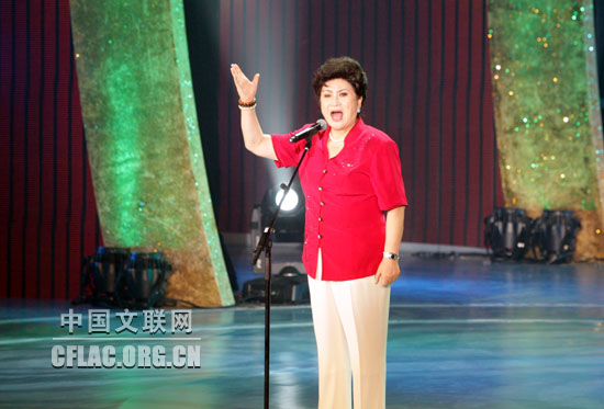 6月17日晚,中国文学艺术界纪念建党90周年主题系列演出之和谐阳光——相声小品综艺晚会在北京民族文化宫大剧院举行。图为田华、王晓棠、杨在葆、萨日娜、刘劲表演配乐诗朗诵《七月,我们的选择》。中国文联网 董大汗 摄