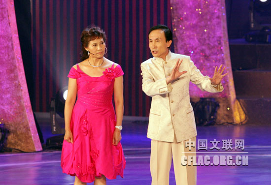 6月17日晚,中国文学艺术界纪念建党90周年主题系列演出之和谐阳光——相声小品综艺晚会在北京民族文化宫大剧院举行。图为巩汉林、金珠表演小品《浪漫的事》。中国文联网 董大汗 摄