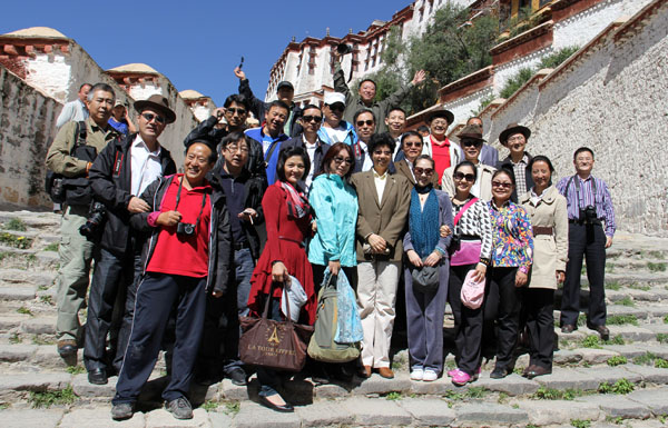 中国文联赴西藏慰问采风团成员在布达拉宫合影。中国文联网 郭青剑 摄