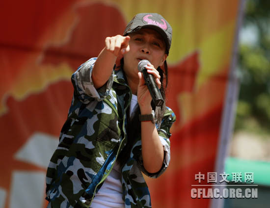 中国文联“心连心”慰问艺术团小分队在宁强演出,图为那英演唱《雾里看花》。