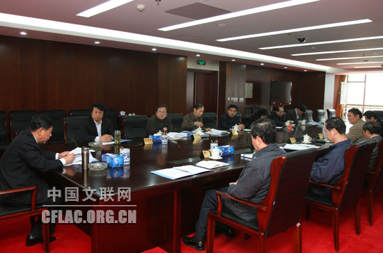 中国文联党组召开会议部署抗震救灾工作,图为会议现场