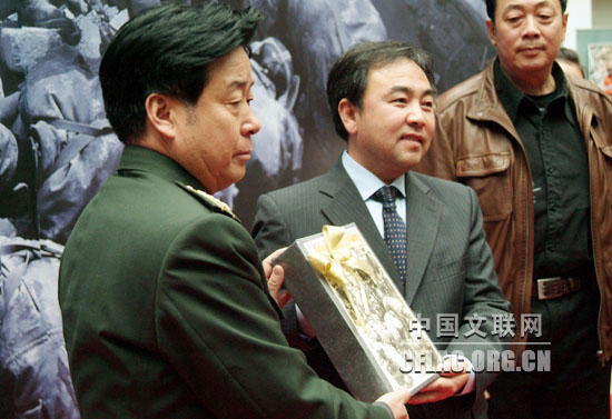 由中国文联、青海省委宣传部、中国摄协主办,青海省文联、青海省摄协协办的“影像凝聚力量 爱心传递真情——2010青海玉树抗震救灾纪实摄影展”4月20日在京开幕。图为中国文联党组成员、书记处书记廖奔讲话。中国文联网 郭青剑 摄