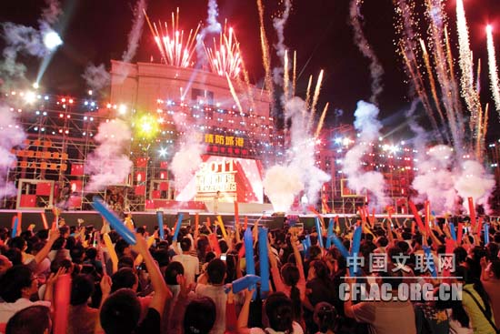 中国杂协组织近百名杂技艺术家为广西防城港群众献上了众多优秀的节目,图为表演现场。