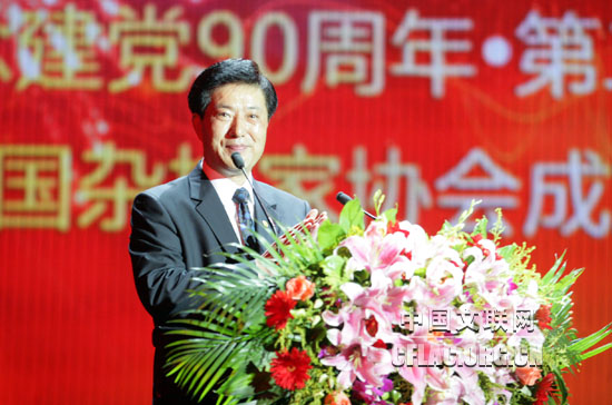 6月18日晚,“纪念建党90周年·第二届中国杂技艺术节”精品杂技节目展演暨表彰颁奖仪式在北京天桥剧场举行。图为中国文联党组书记赵实讲话。中国文联网 孟祥宁 摄