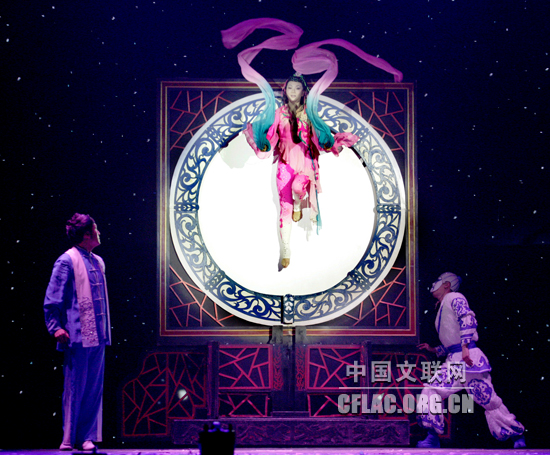 6月18日晚,“纪念建党90周年·第二届中国杂技艺术节”精品杂技节目展演暨表彰颁奖仪式在北京天桥剧场举行。图为魔术《青花瓷韵》。中国文联网 孟祥宁 摄