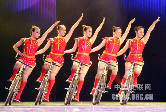 6月18日晚,“纪念建党90周年·第二届中国杂技艺术节”精品杂技节目展演暨表彰颁奖仪式在北京天桥剧场举行。图为杂技《雏凤凌空——女子集体车技》。中国文联网 孟祥宁 摄