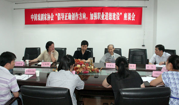 7月29日,中国剧协组织首都戏剧界代表召开“倡导正确创作方向,加强职业道德建设”座谈会。图为座谈会会场。中国剧协 林琳 摄