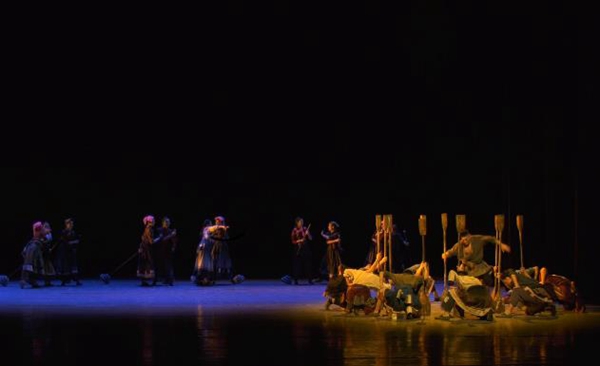 民族民间舞《阿嘎人》。图片来源:中央民族大学舞蹈学院官网《阿嘎人》演出视频截图