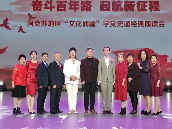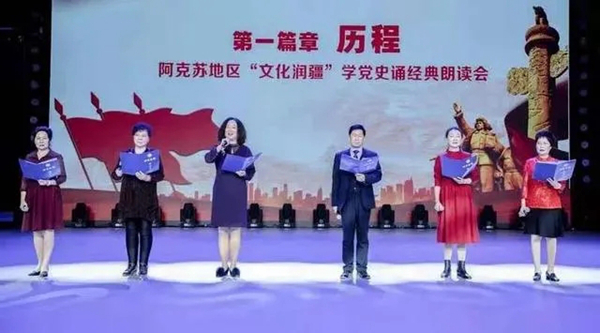 阿克苏地区文联举办“文化润疆”学党史经典朗读会,图为活动现场。