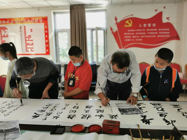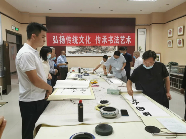巴州文联开展学党史为民办实事我们的中国梦文化进万家书法创作培训活动,图为活动现场。