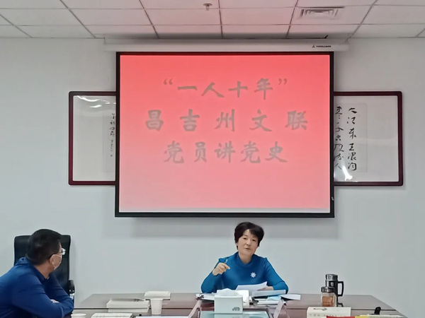昌吉州文联举办"一人十年“专题党课活动。图为图为党课现场。