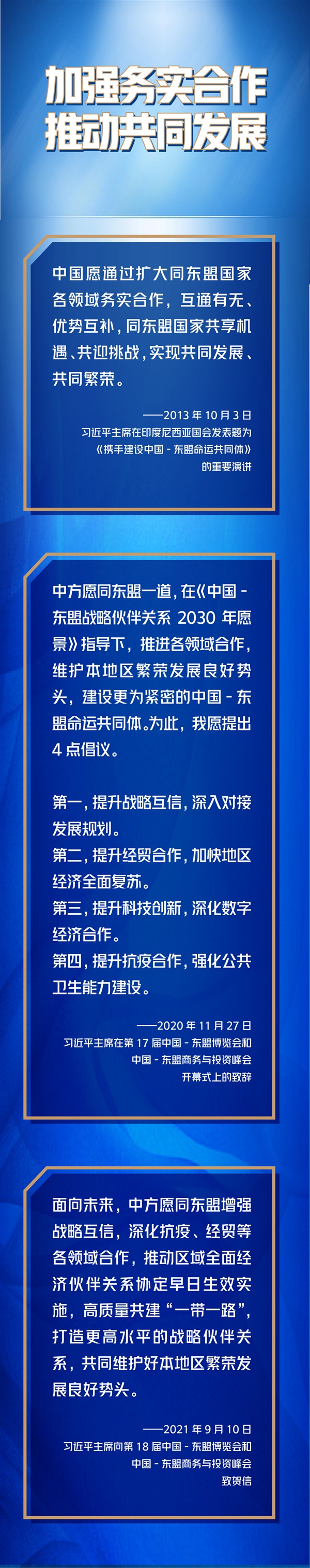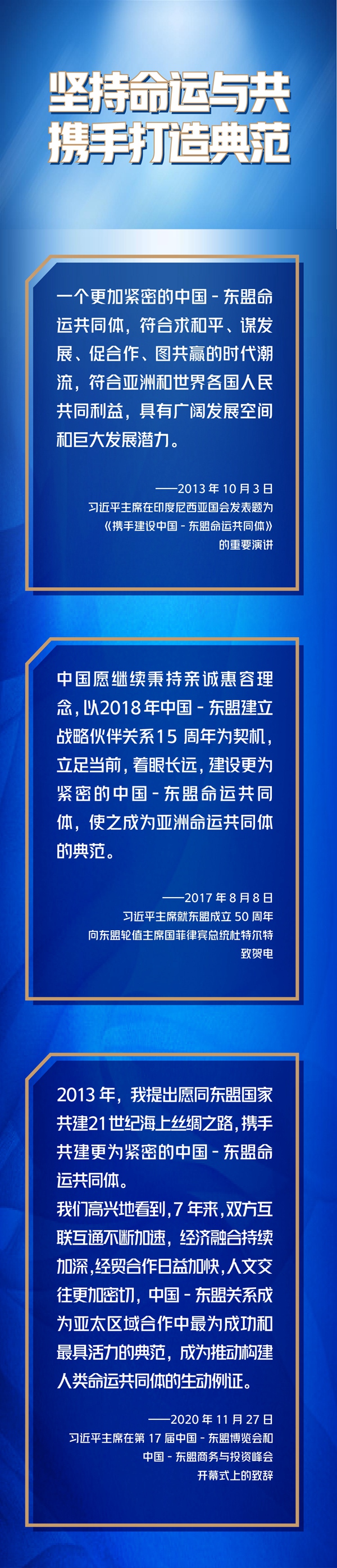 携手走过30年,中国-东盟关系已成为亚太区域合作中最为成功、最具活力的典范,成为推动构建人类命运共同体的生动例证。习近平主席同各方一起,为建设更为紧密的中国-东盟命运共同体擘画蓝图、指引方向。