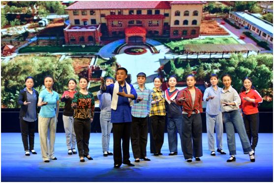 在《这就是民心》中,没有采用复杂的舞台置景,而是灵活运用道具,比如南部山区连片的大山,就是用很多长条凳一把把垒起来的;村民劳作用的农具等,也是由长条凳代表。“我们在全区演出,观众认可度很高,特别是在西海固地区,那里的观众看着更亲切。”田冰说。