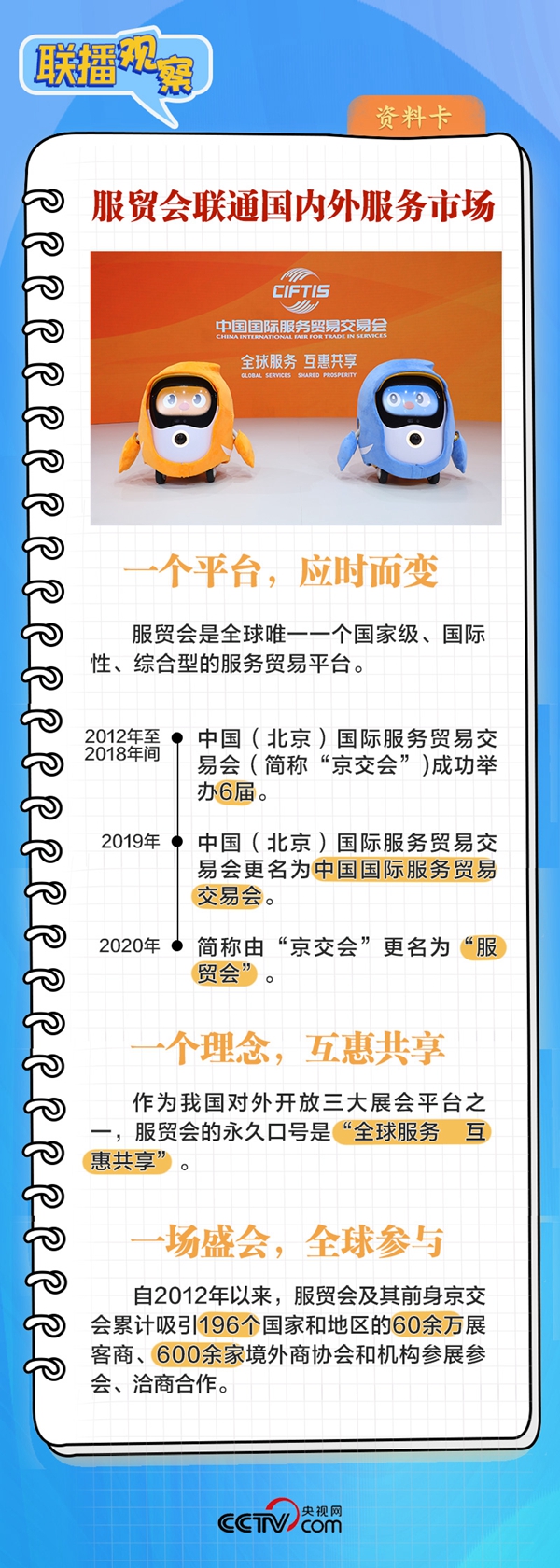作为全球服务贸易领域规模最大的综合性展会,服贸会一直发挥扩大开放、深化合作、引领创新的重要平台作用,有外媒称之为“全球商业机遇的中心”,为世界经济发展注入新动力。