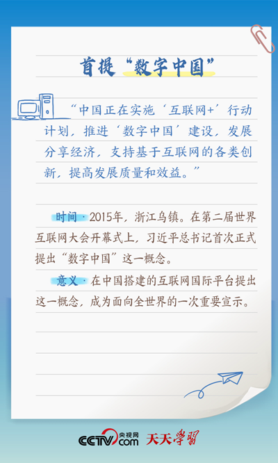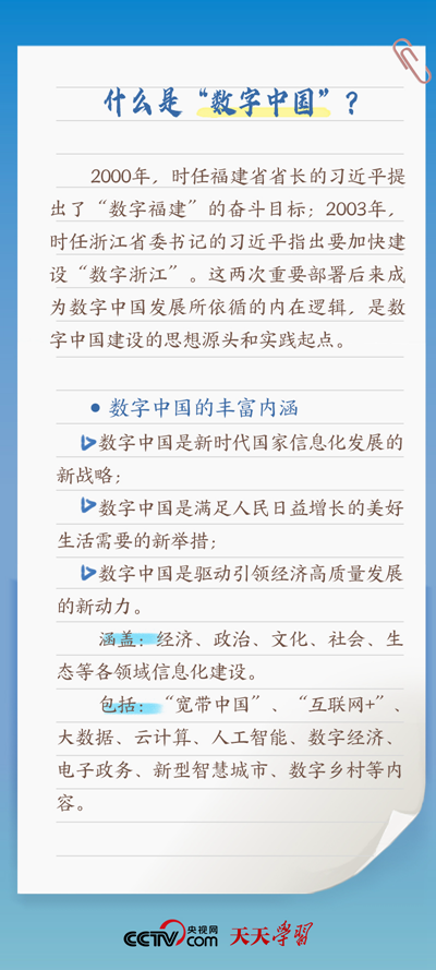 当今世界,信息技术创新日新月异,数字化、网络化、智能化深入发展。党的十八大以来,习近平总书记曾多次明确强调推进“数字中国”建设。什么是“数字中国”?怎样建设“数字中国”?央视网《天天学习》特整理学习笔记,与您一起学习。