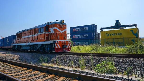 △“义新欧”先后开通了18条点对点的班列主线,业务范围辐射50多个国家和160多个城市。(总台国广记者李晋拍摄)
