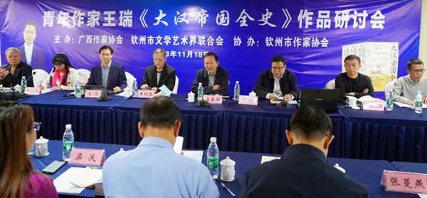 11月18日,由广西作家协会、钦州市文学艺术界联合会主办,钦州市作家协会协办的青年作家王瑞(笔名上医治国)《大汉帝国全史》作品研讨会举行。