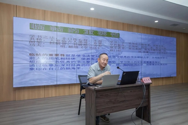 8月13日,由大连市文联主办、大连市书法家协会承办的“让艺术点亮生活——名家传艺”系列讲座第四讲暨基层文联专题培训在普兰店区海湾小学举办。本期邀请大连市书法家协会副主席刘发林作题为《师古不泥——浅议书法临帖》的主题讲座。大连市文联组联部负责同志,普兰店区文联、区文化馆、区书协有关领导,以及普兰店区文联机关干部、文艺骨干、书法教育工作者和书法爱好者120余人聆听了讲座。讲座由大连市书法家协会秘书长杜林主持。