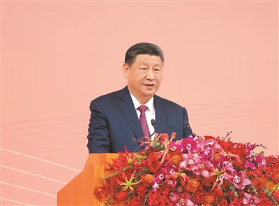 习近平表示,澳门拥有“一国两制”这一独特优势,已经打下坚实发展基础,乘着强国建设、民族复兴的浩荡东风,完全有条件有能力飞得更高、走得更远、实现更好发展。