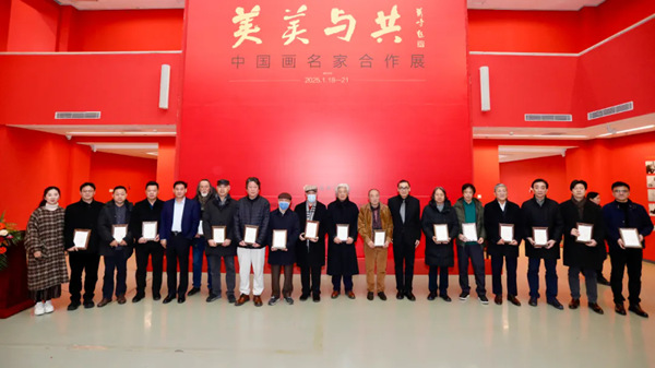 1月20日,“美美与共——中国画名家合作展”在中国国家画院美术馆西院展区开幕。展览汇聚了近30位当代中国画坛的优秀艺术家,共同创作《草满花堤》《百花鹤瑞》《春天来了》《和煦春风》《燕山秋色》《沸腾的草原》《重岩叠翠》《泰山奇松》《放翁散情》《雅集图记》等作品,涵盖山水、人物、花鸟等多种题材。