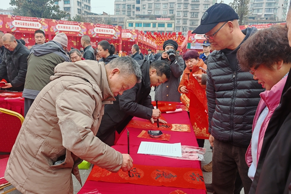2025年元旦以来,文艺小分队连续作战,以“志愿黔行•艺惠万家”“和美毕节•志在毕行”“墨香新时代•和谐颂新风”等为主题,先后走进毕节市人民公园、七星关区碧阳街道滨湖社区、贵州工程应用技术学院、七星关区碧海街道龙潭社区、七星关区天河广场、武警毕节某中队、毕节高铁站、七星关区柏杨林街道办事处、七星关区青龙街道河尾社区、赫章县河镇乡海雀村、毕节市委宣传部、七星关区朱昌镇伍坪社区等多个地点,为农村群众、社区居民、企业职工、机关干部、驻地官兵、学校师生、返乡旅客等干部群众表演文艺节目、义写春联、送吉祥祝福、拍摄照片、赠送《高原》《锦绣乌蒙》《仰望天渠》《毕节民间故事》等文学刊物书籍……活动现场呈现一派喜庆祥和的热闹氛围。