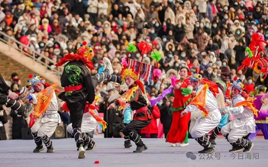 启动仪式上,荣获第十七届中国民间文艺最高奖——山花奖的秧歌队,再次带来获奖时的精彩演出。来自济南商河的滨河秧歌艺术团、青岛的胶州秧歌队、陕北的安塞腰鼓表演队、广东的潮阳文光桃园英歌队和5支海阳秧歌队,以丰富多彩的表演营造浓郁年味,让市民感受到别样的非遗年俗。