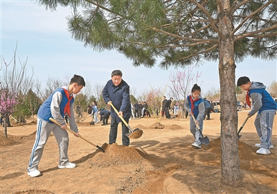 ■植树造林是生态文明建设重要一环。各地区各部门要进一步行动起来,动员组织广大干部群众积极参与造林绿化,践行绿色发展理念,弘扬生态文化,汇聚共建美丽中国的磅礴力量,让祖国大地更加绿意盎然、生机勃发
